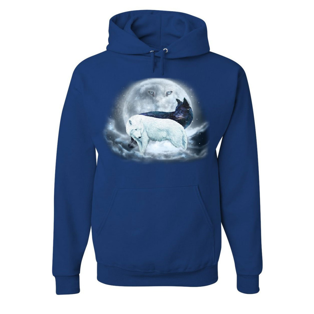 YIN & YANG WOLVES hoodie animals wildlife nature wolf pack moon sweatshirt royal blue