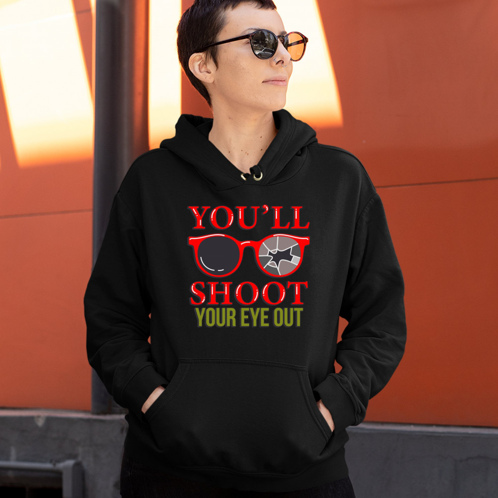 YOU'LL SHOOT YOUR EYE OUT sweatshirt funny christmas saying xmas hoodie black