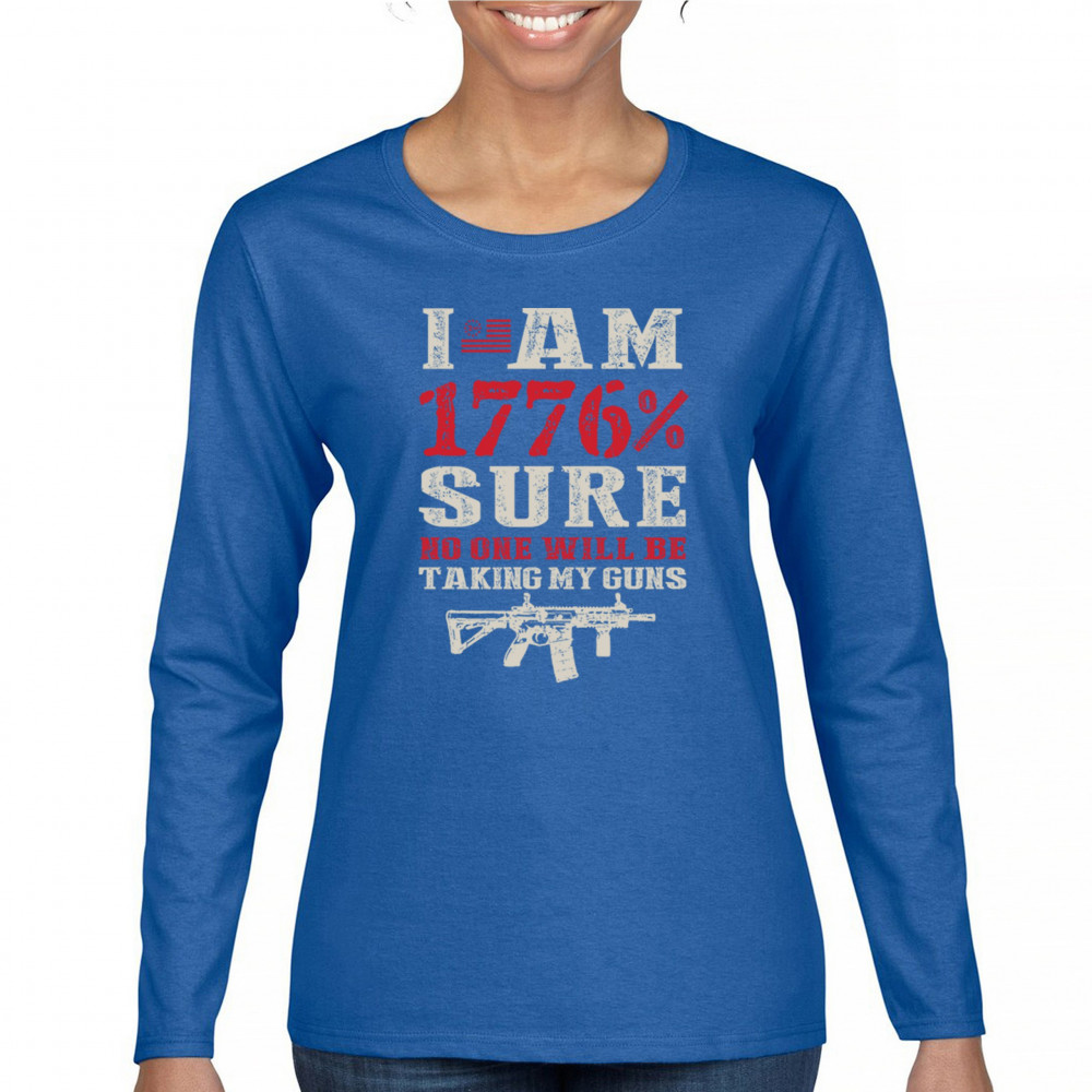 This eye-catching design shouts American pride with its 1776% certainty and pro-gun message. A distressed rifle graphic pairs with bold lettering and patriotic red, white, and blue styling. Perfect for gun owners, liberty advocates, and veterans who take their constitutional rights seriously. A true celebration of freedom and firepower.