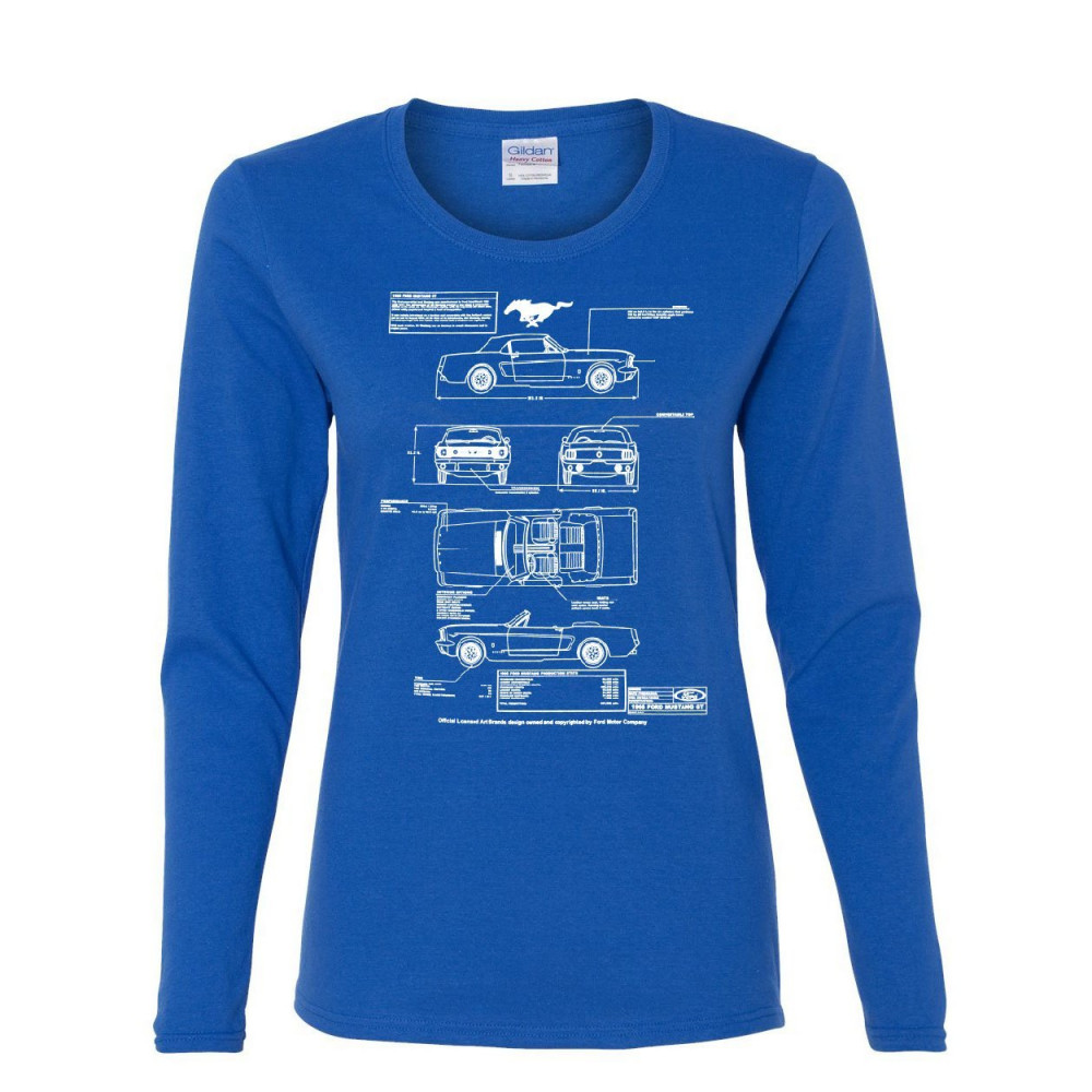 1966 FORD MUSTANG GT BLUEPRINT women's long sleeve t-shirt royal blue