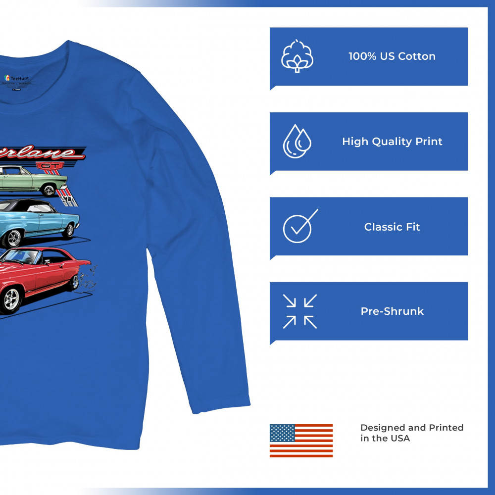 Celebrate the raw power of the 1967 Ford Fairlane GT with this burnout-charged design. Featuring three muscle cars in retro detail, it's made for vintage Ford collectors, classic car fans, and V8 enthusiasts. Whether you're heading to a show or wrenching in the garage, this design brings the roar of the 60s.