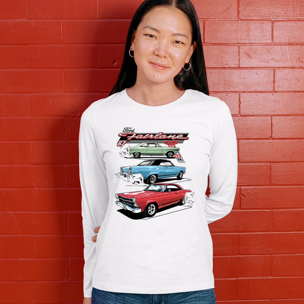 Celebrate the raw power of the 1967 Ford Fairlane GT with this burnout-charged design. Featuring three muscle cars in retro detail, it's made for vintage Ford collectors, classic car fans, and V8 enthusiasts. Whether you're heading to a show or wrenching in the garage, this design brings the roar of the 60s.