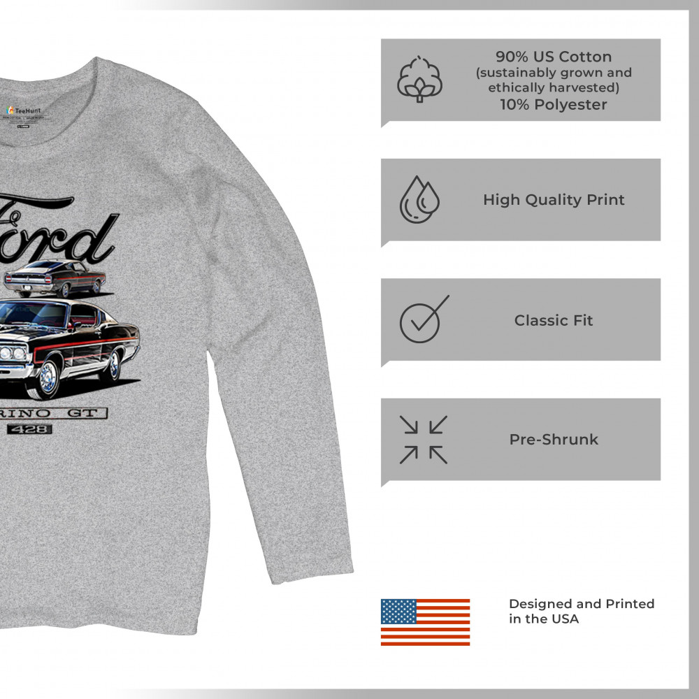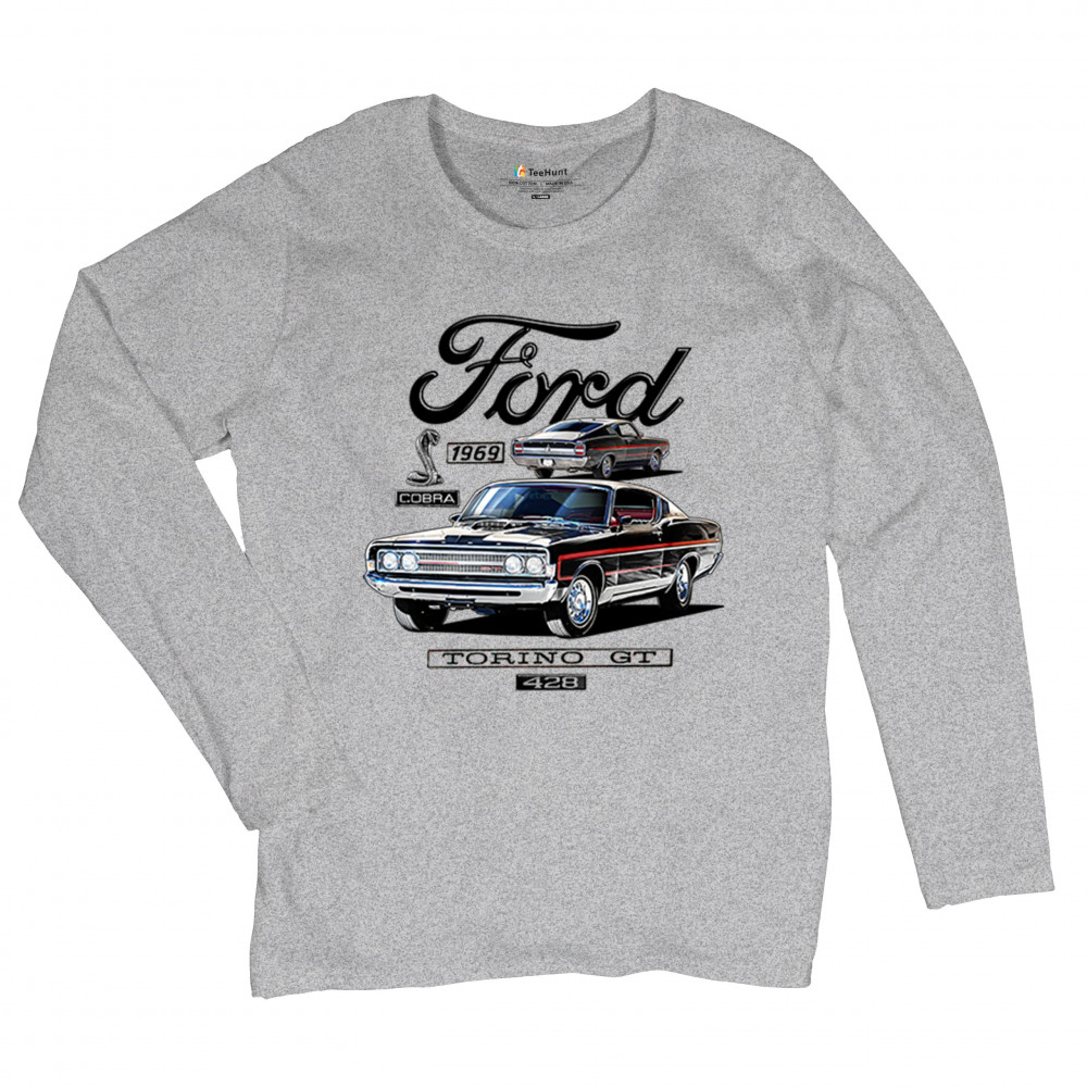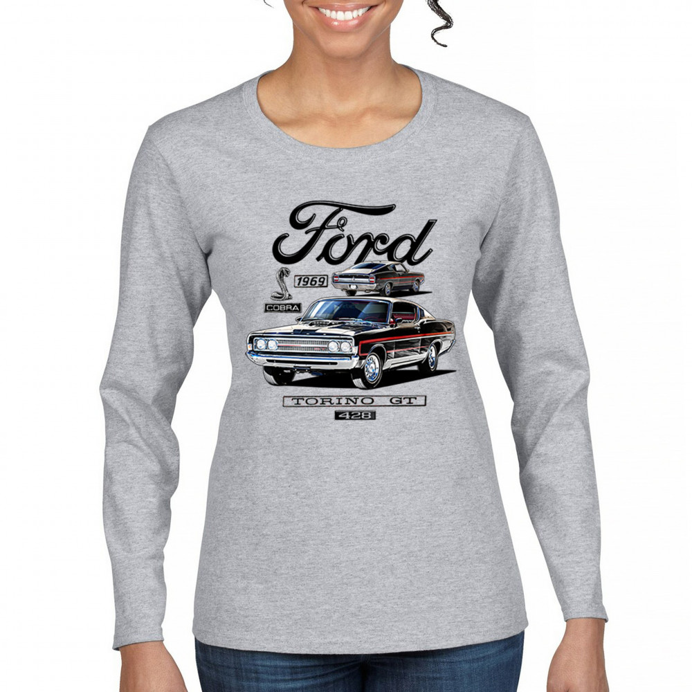 1969 FORD TORINO GT COBRA women's long sleeve t-shirt american muscle car retro gray