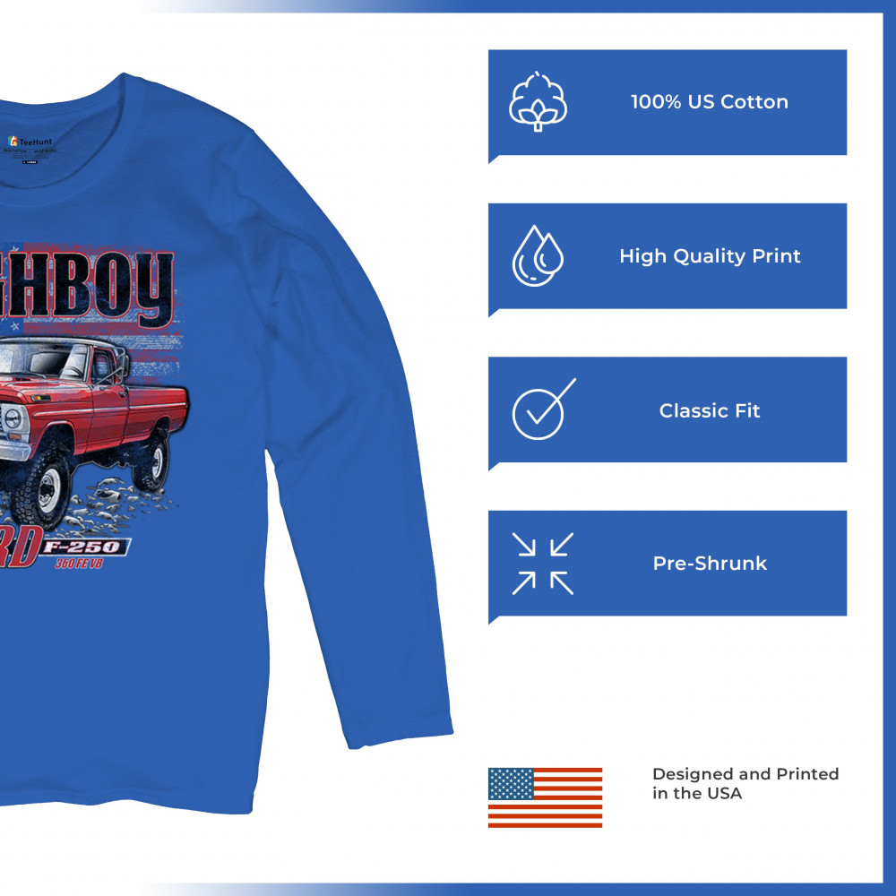 This vintage truck design features a 1971 Ford F-250 Highboy 4x4 with a classic lifted stance and patriotic flag background. Bold and nostalgic, it’s perfect for classic truck fans, 4x4 lovers, off-roaders, and collectors who appreciate American V8 tradition. Show it off at truck shows, meets, or cruise nights.