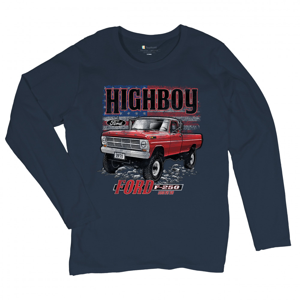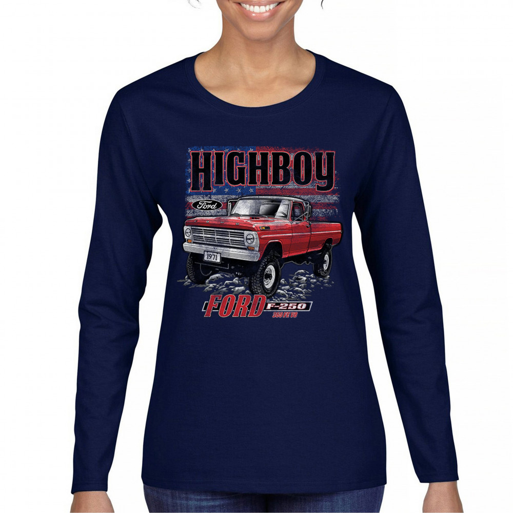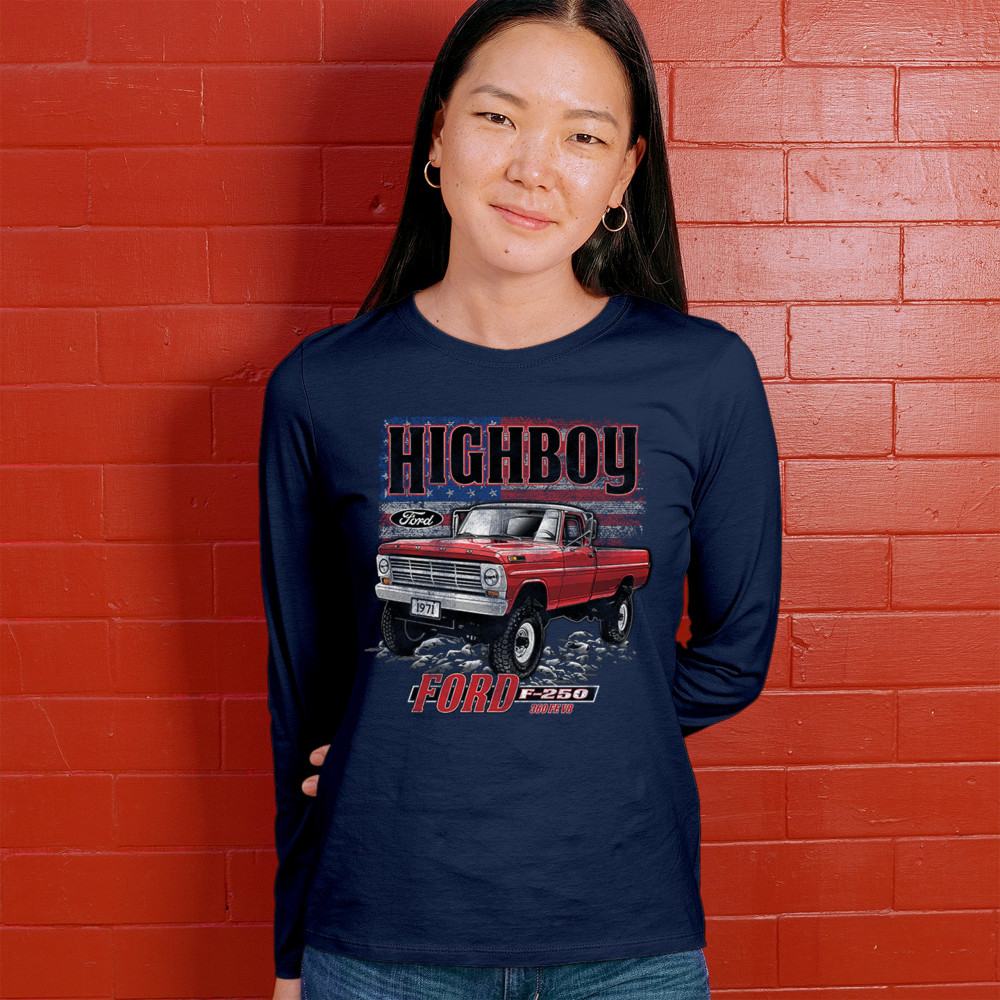 This vintage truck design features a 1971 Ford F-250 Highboy 4x4 with a classic lifted stance and patriotic flag background. Bold and nostalgic, it’s perfect for classic truck fans, 4x4 lovers, off-roaders, and collectors who appreciate American V8 tradition. Show it off at truck shows, meets, or cruise nights.