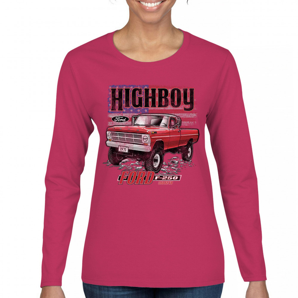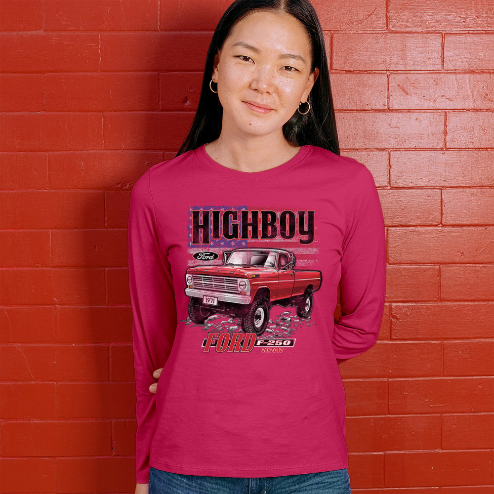 This vintage truck design features a 1971 Ford F-250 Highboy 4x4 with a classic lifted stance and patriotic flag background. Bold and nostalgic, it’s perfect for classic truck fans, 4x4 lovers, off-roaders, and collectors who appreciate American V8 tradition. Show it off at truck shows, meets, or cruise nights.
