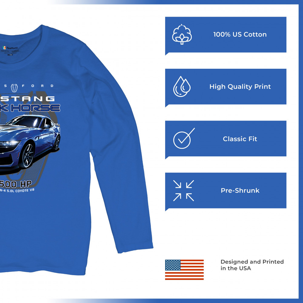 Mustang Dark Horse 500 HP design featuring V8 muscle and street styling. Perfect for Ford fans, car meets, and modern performance lovers.