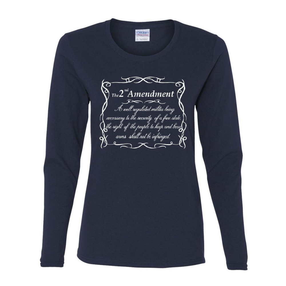 THE 2ND AMENDMENT TEXT 2nd amendment women's long sleeve tee freedom right to bear arms constitution navy blue