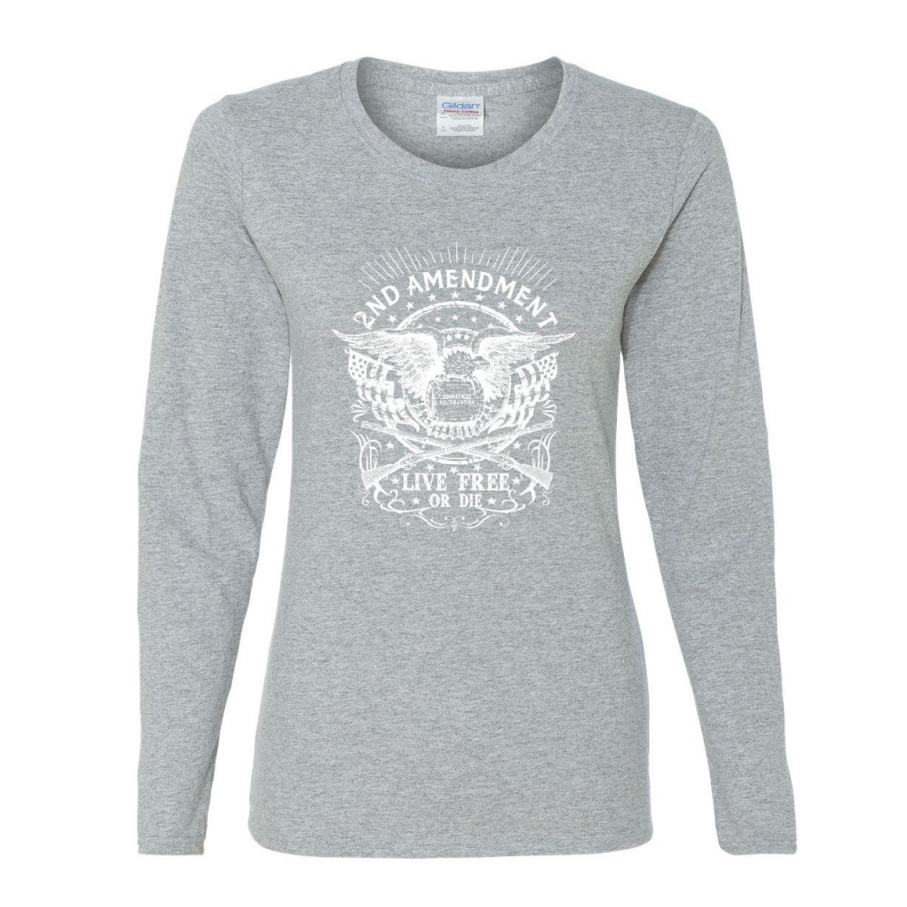2ND AMENDMENT LIVE FREE OR DIE women's long sleeve tee 2a gun rights freedom usa gray