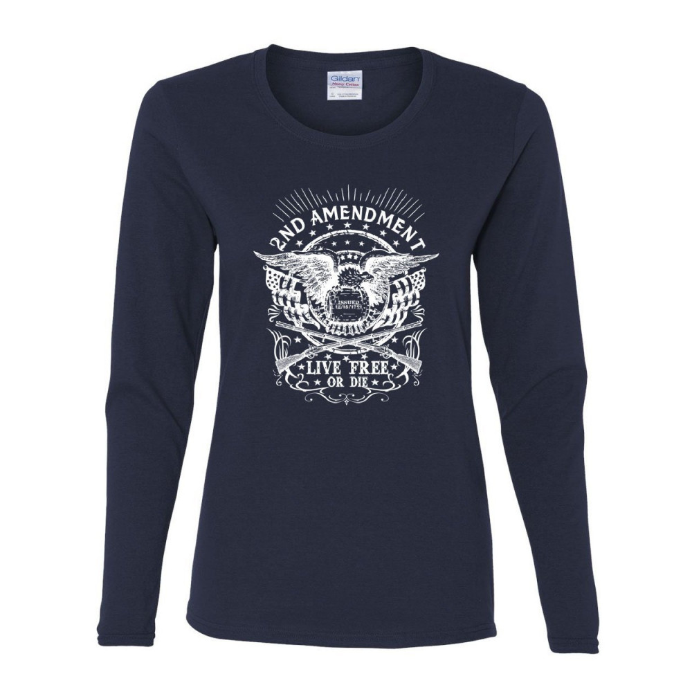 2ND AMENDMENT LIVE FREE OR DIE women's long sleeve tee 2a gun rights freedom usa navy blue