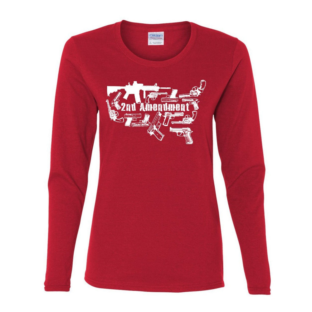 2ND AMENDMENT US SILHOUETTE women's long sleeve tee right to bear arms 2a guns red