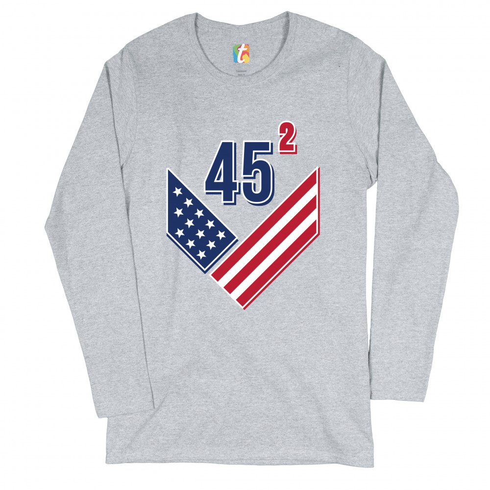 45 SQUARED women's long sleeve t-shirt two terms donald trump conservative maga gray