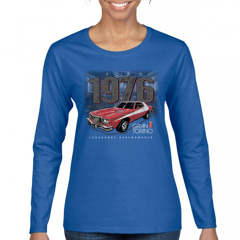 1976 Ford Gran Torino design with red and white retro style. Perfect for muscle car fans, Ford lovers, and classic car event gear.