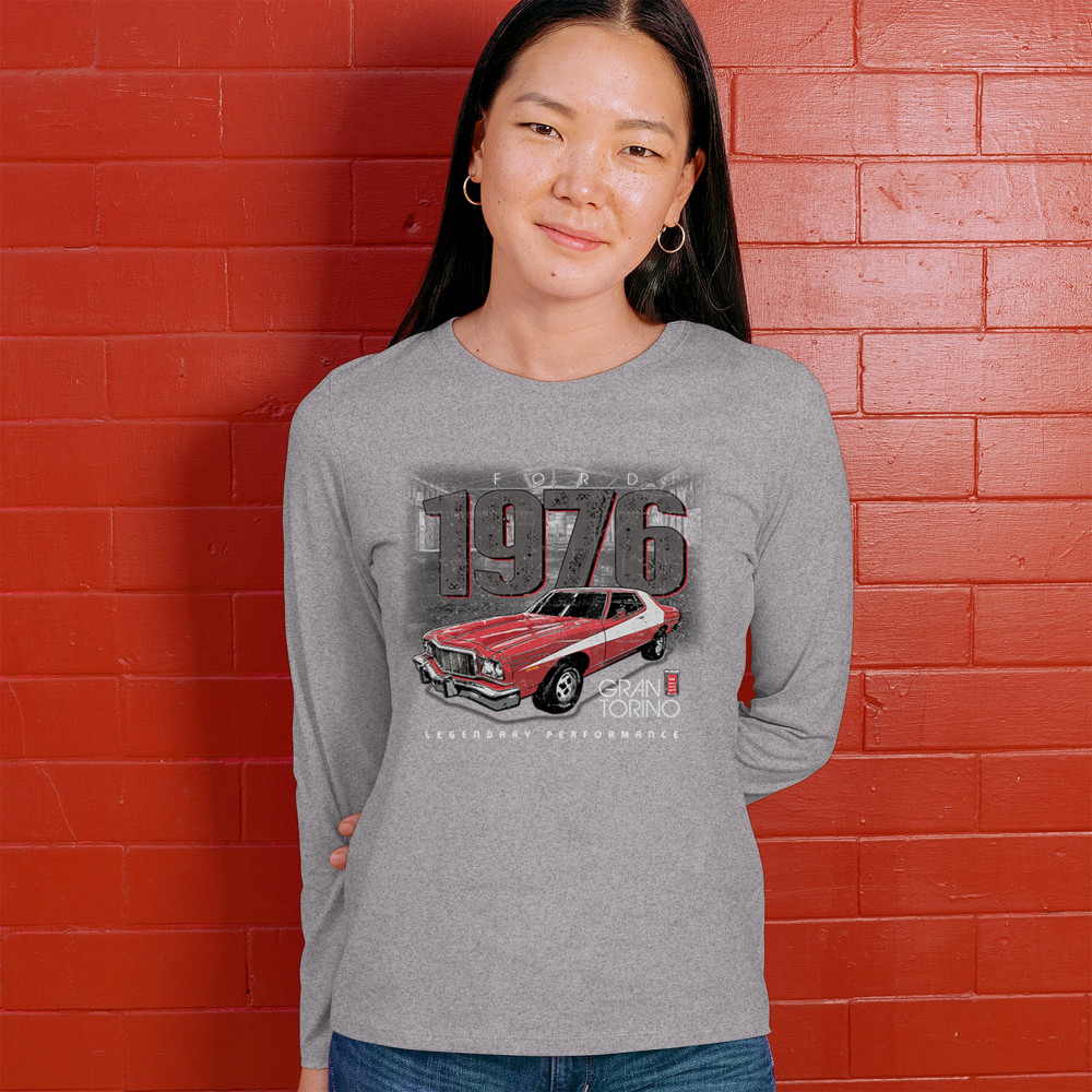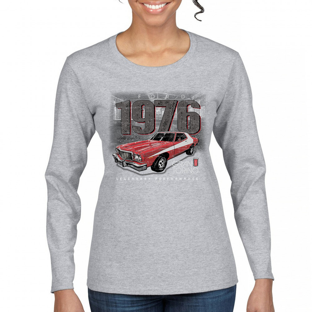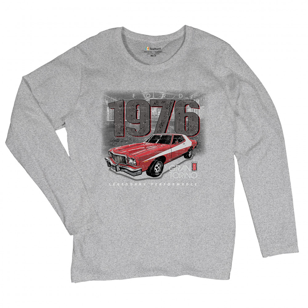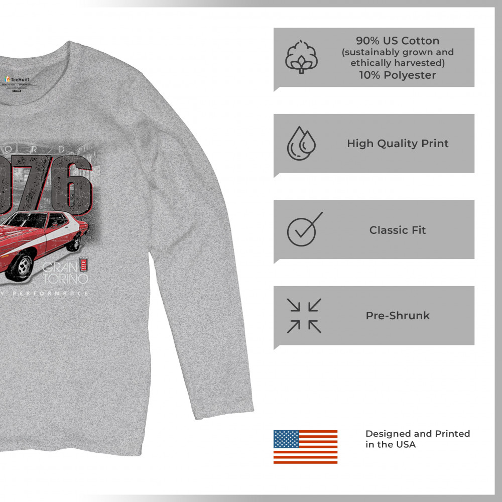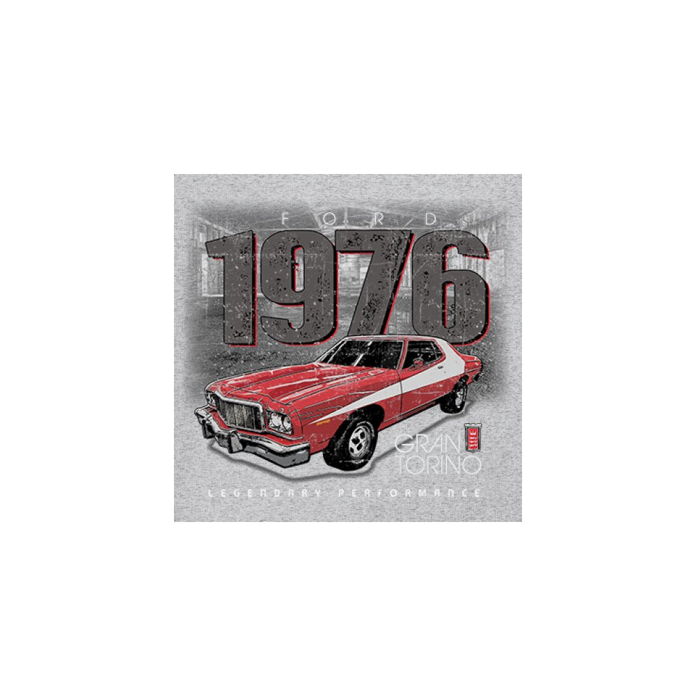 1976 Ford Gran Torino design with red and white retro style. Perfect for muscle car fans, Ford lovers, and classic car event gear.