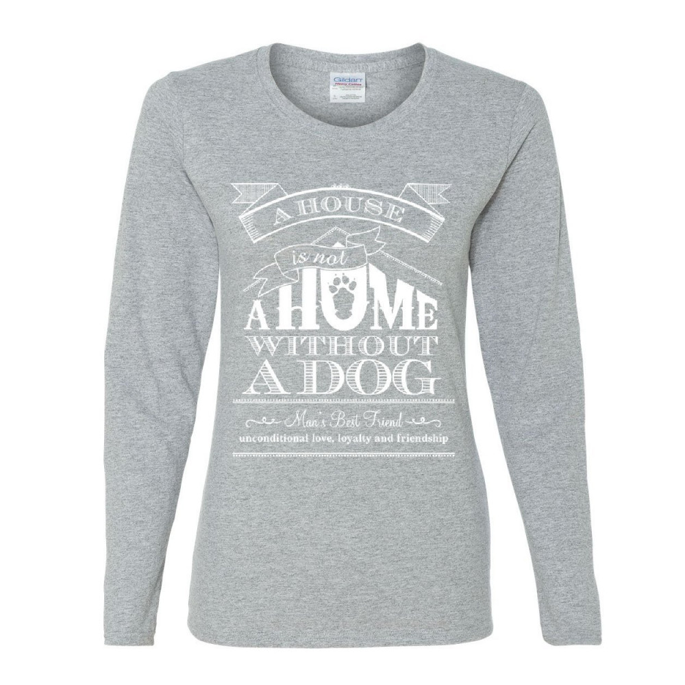 A HOUSE IS NOT A HOME WITHOUT A DOG women's long sleeve tee pet paw labrador gray