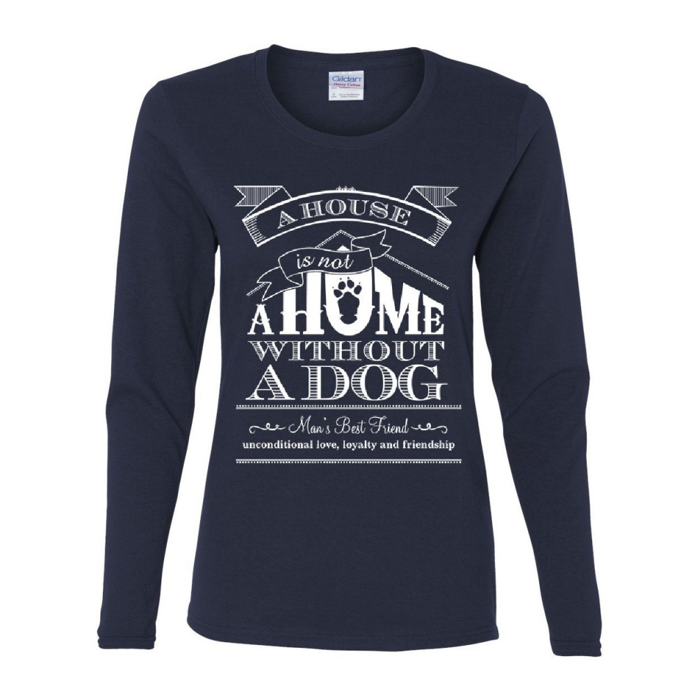 A HOUSE IS NOT A HOME WITHOUT A DOG women's long sleeve tee pet paw labrador navy blue
