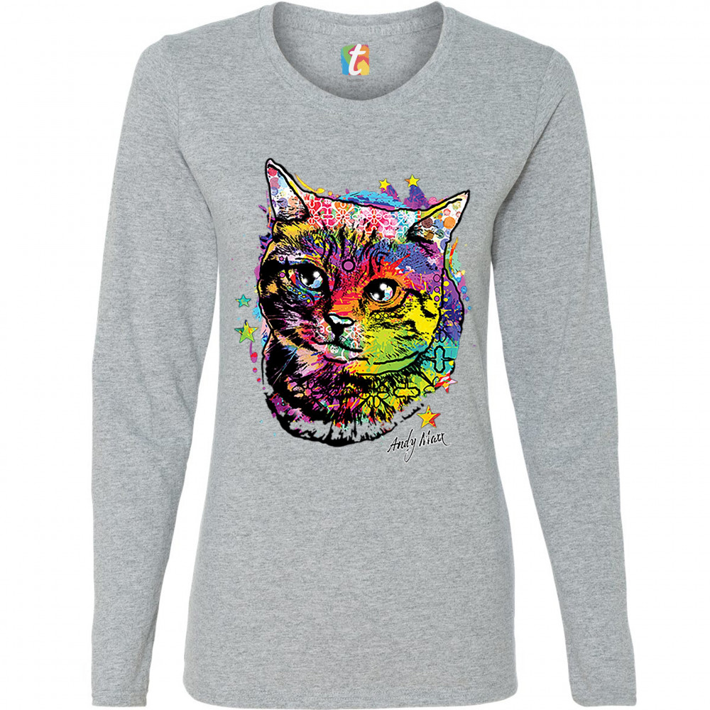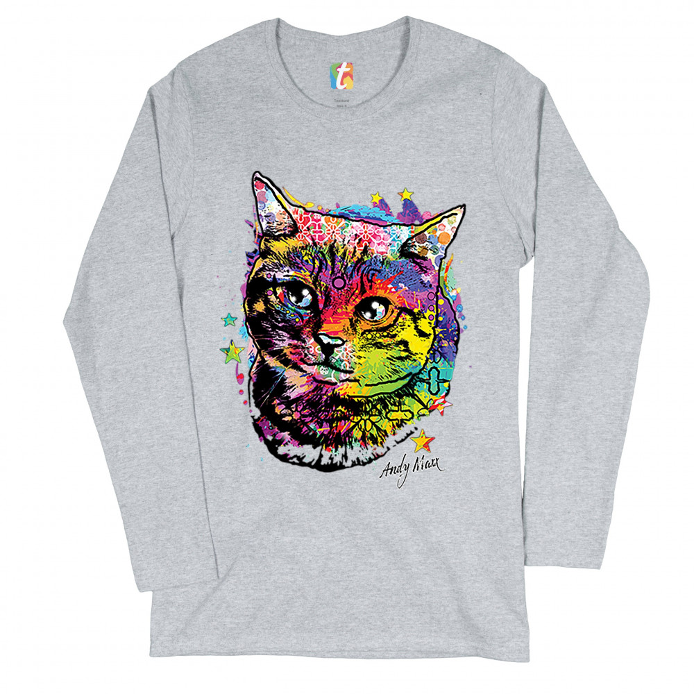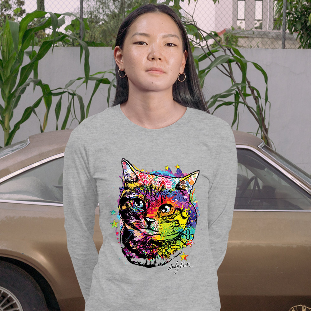 ADORABLE KITTEN women's long sleeve t-shirt neon multicolor kitty andy maxx cat gray