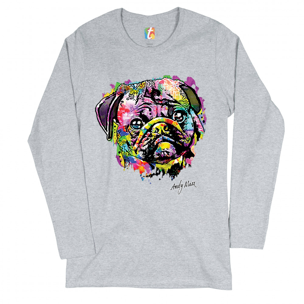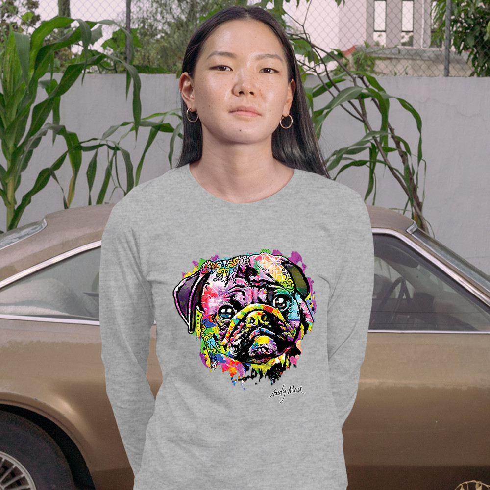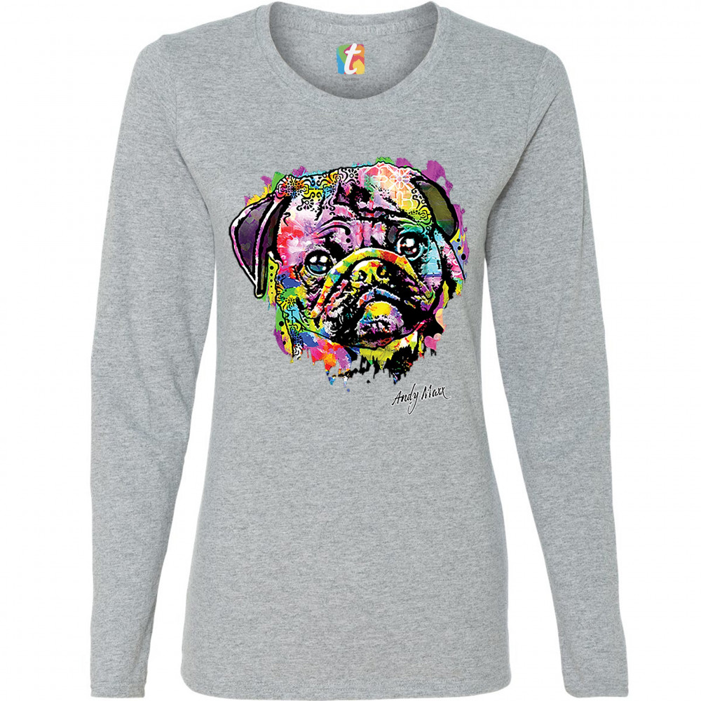 ADORABLE PUG women's long sleeve t-shirt andy maxx pet owner i love my dog gray