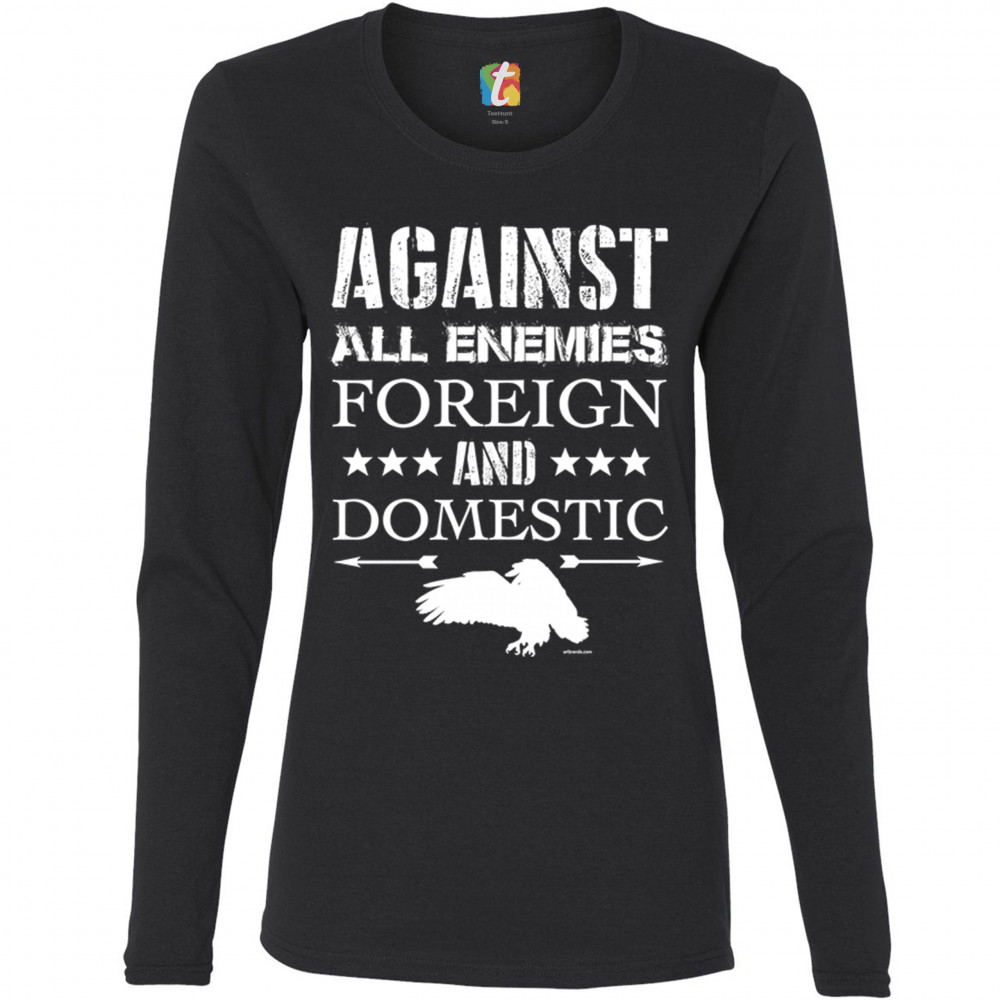 AGAINST ALL ENEMIES FOREIGN AND DOMESTIC women's long sleeve t-shirt veteran black