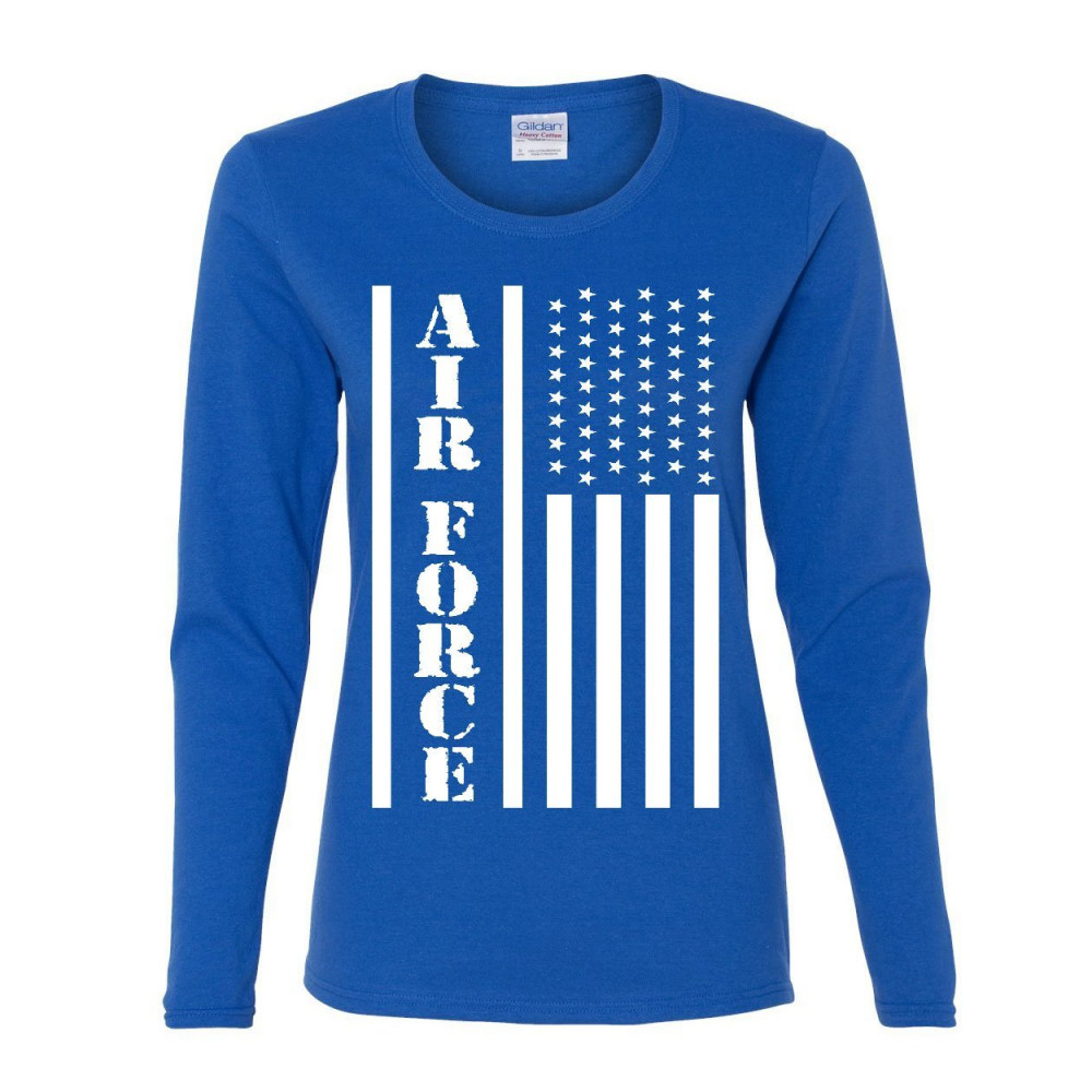 AIR FORCE FLAG MILITARY women's long sleeve tee patriot veteran stars & stripes royal blue