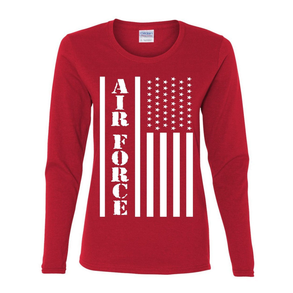 AIR FORCE FLAG MILITARY women's long sleeve tee patriot veteran stars & stripes red