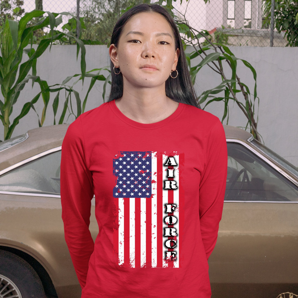 AIR FORCE women's long sleeve t-shirt distressed american flag us armed forces red