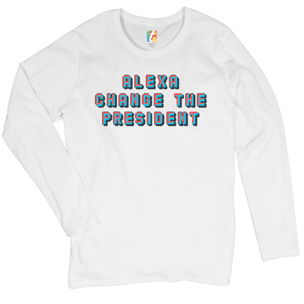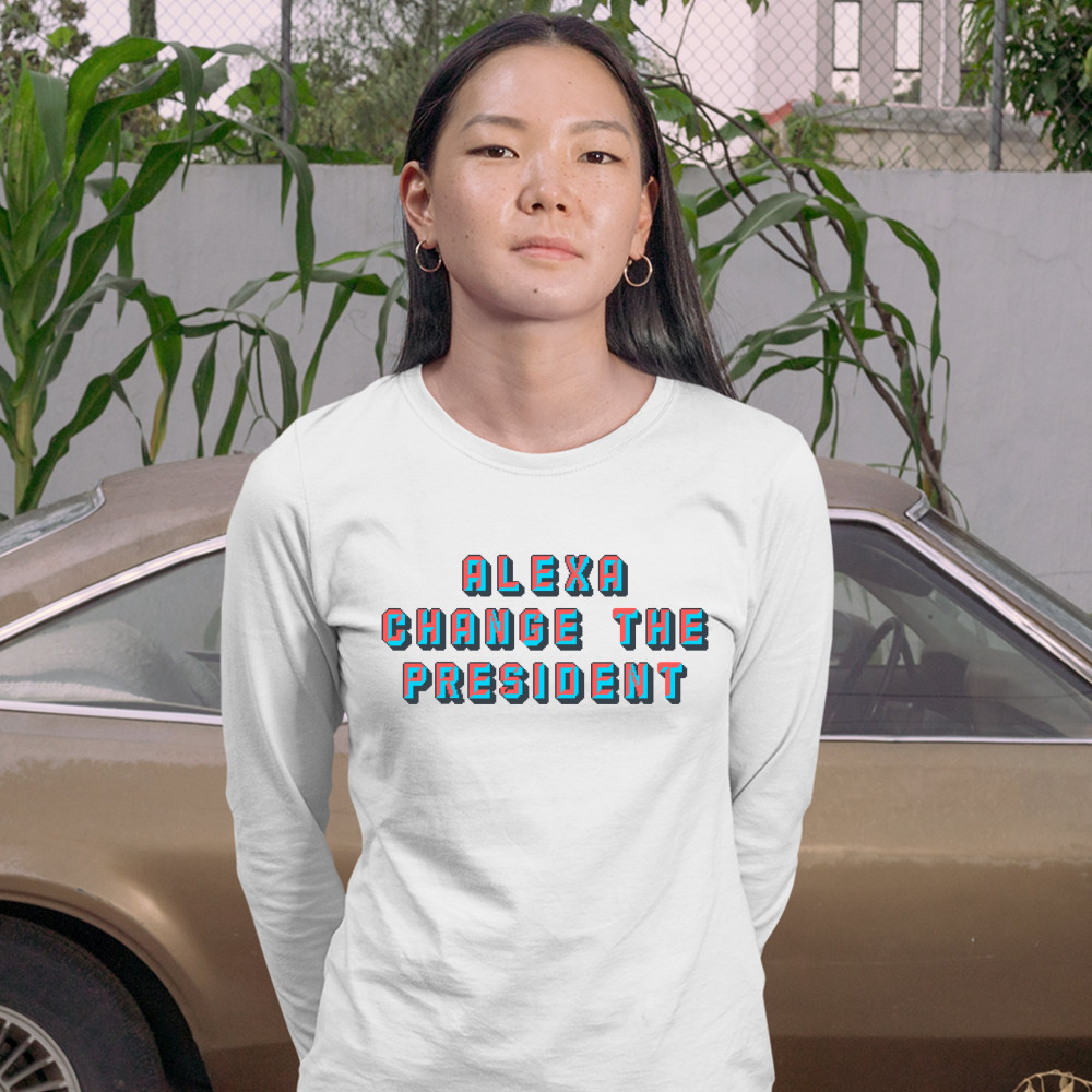 A print saying "Alexa Change the President". A great choice to wear to a Trump rally or give as a gift to a Donald Trump supporter before 2024 presidential elections.