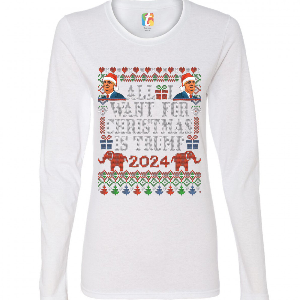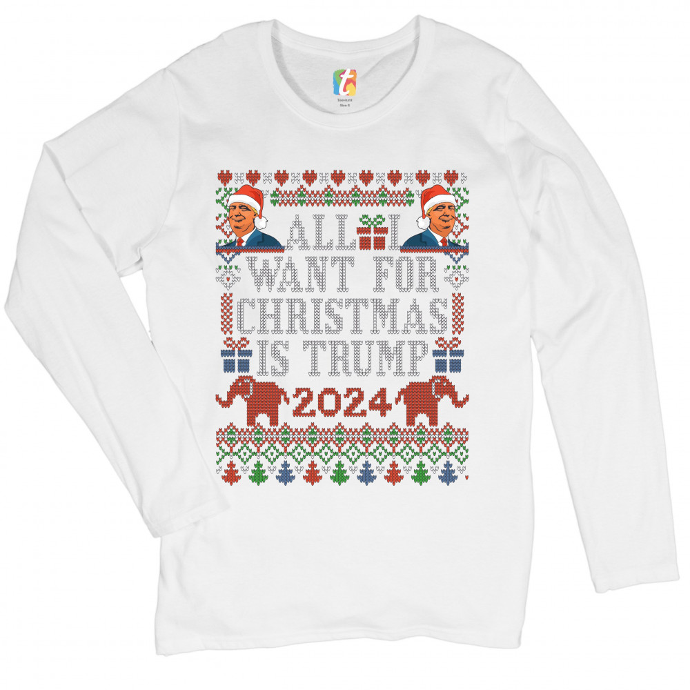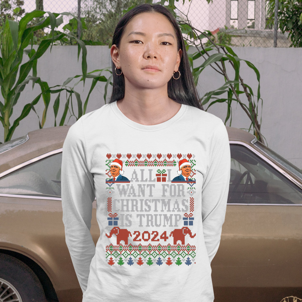ALL I WANT FOR CHRISTMAS IS TRUMP 2024 women's long sleeve t-shirt ugly sweater white