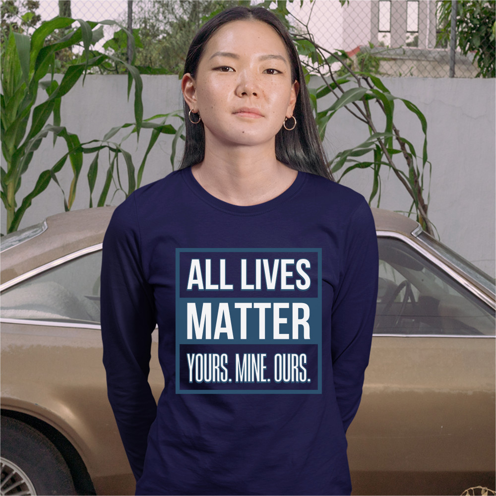ALL LIVES MATTER women's long sleeve t-shirt tolerance equality inspirational navy blue