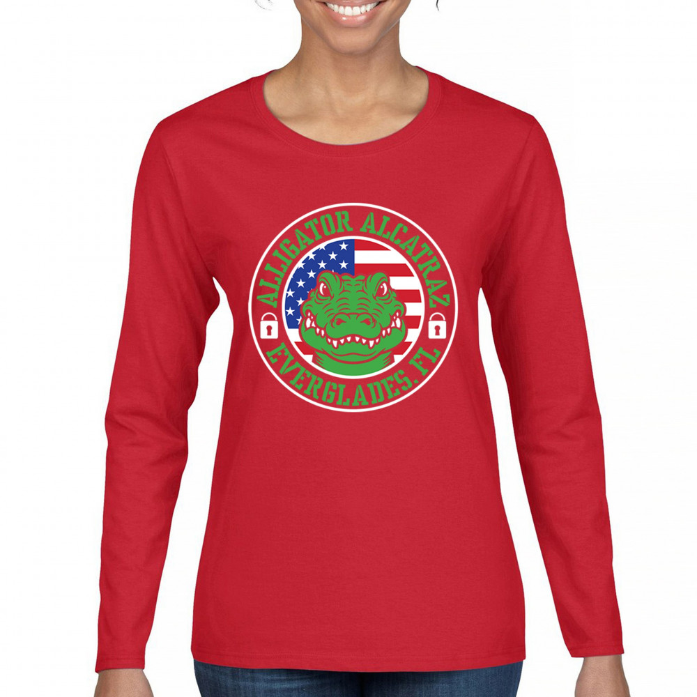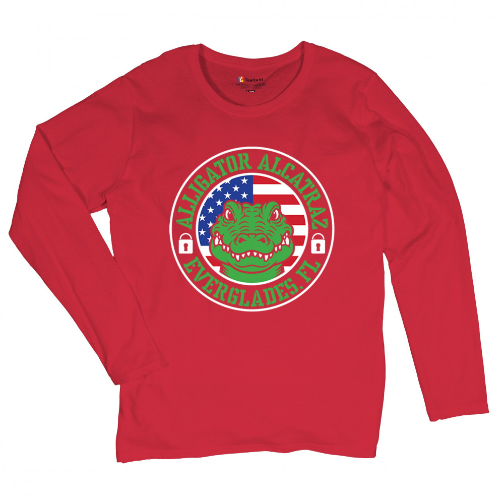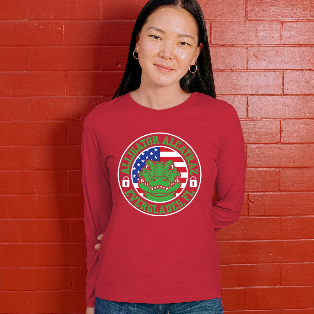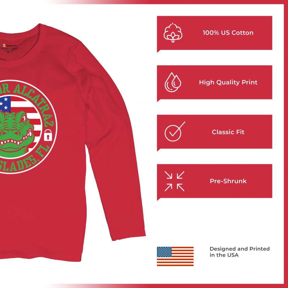 Bold Alligator Alcatraz design with USA flag and conservative message. Patriotic, America First, and proud to take a stand for national values.