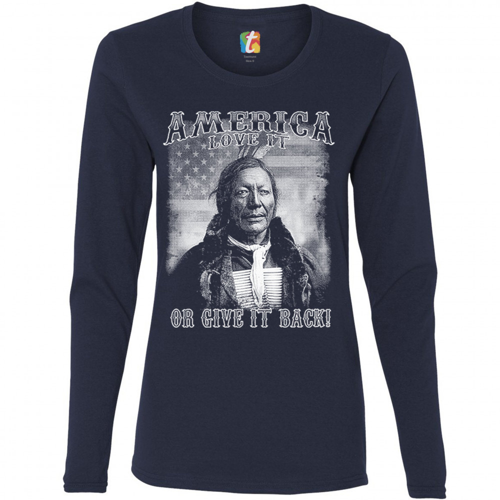 AMERICA LOVE IT OR GIVE IT BACK women's long sleeve t-shirt indigenous chief navy blue
