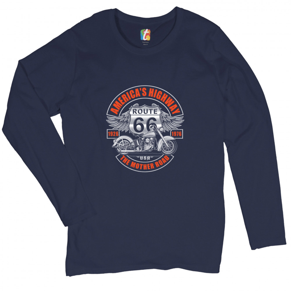 AMERICA'S HIGHWAY THE MOTHER ROAD women's long sleeve t-shirt route 66 biker mc navy blue
