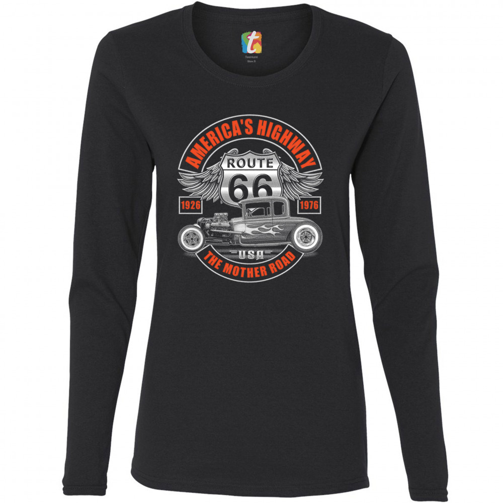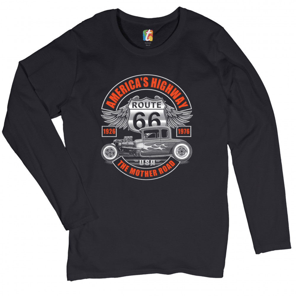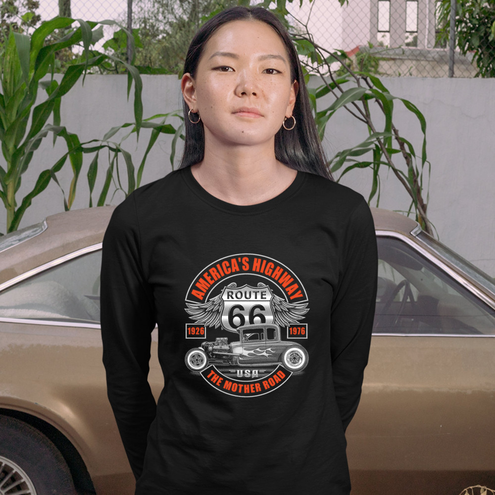 AMERICA'S HIGHWAY women's long sleeve t-shirt route 66 the mother road hot rod black