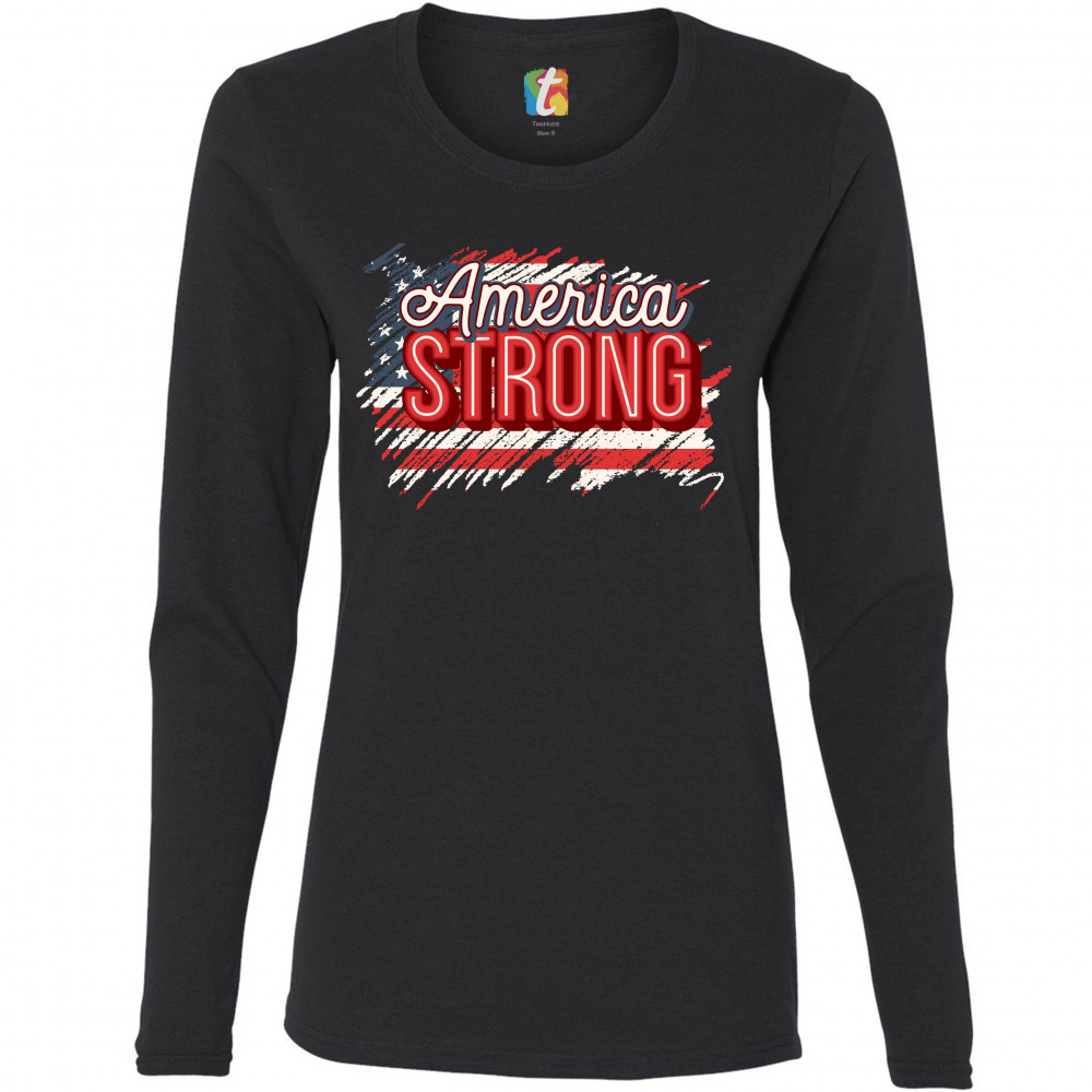 AMERICA STRONG women's long sleeve t-shirt distressed american flag 4th of july black