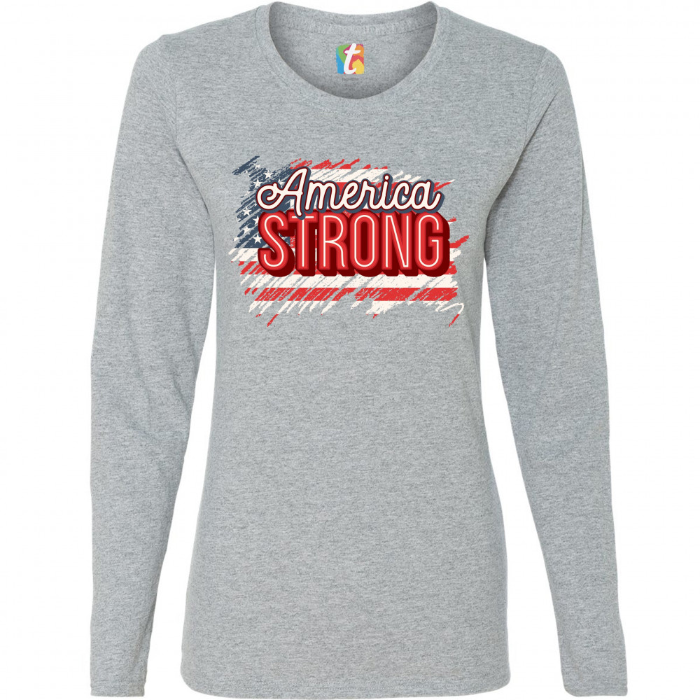 AMERICA STRONG women's long sleeve t-shirt distressed american flag 4th of july gray
