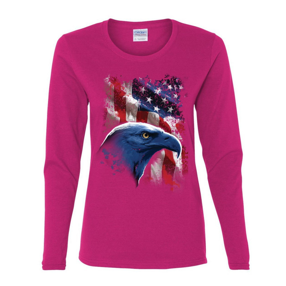 AMERICAN BALD EAGLE STARS AND STRIPES american bald eagle women's long sleeve tee american flag 4th of july patriotic pink