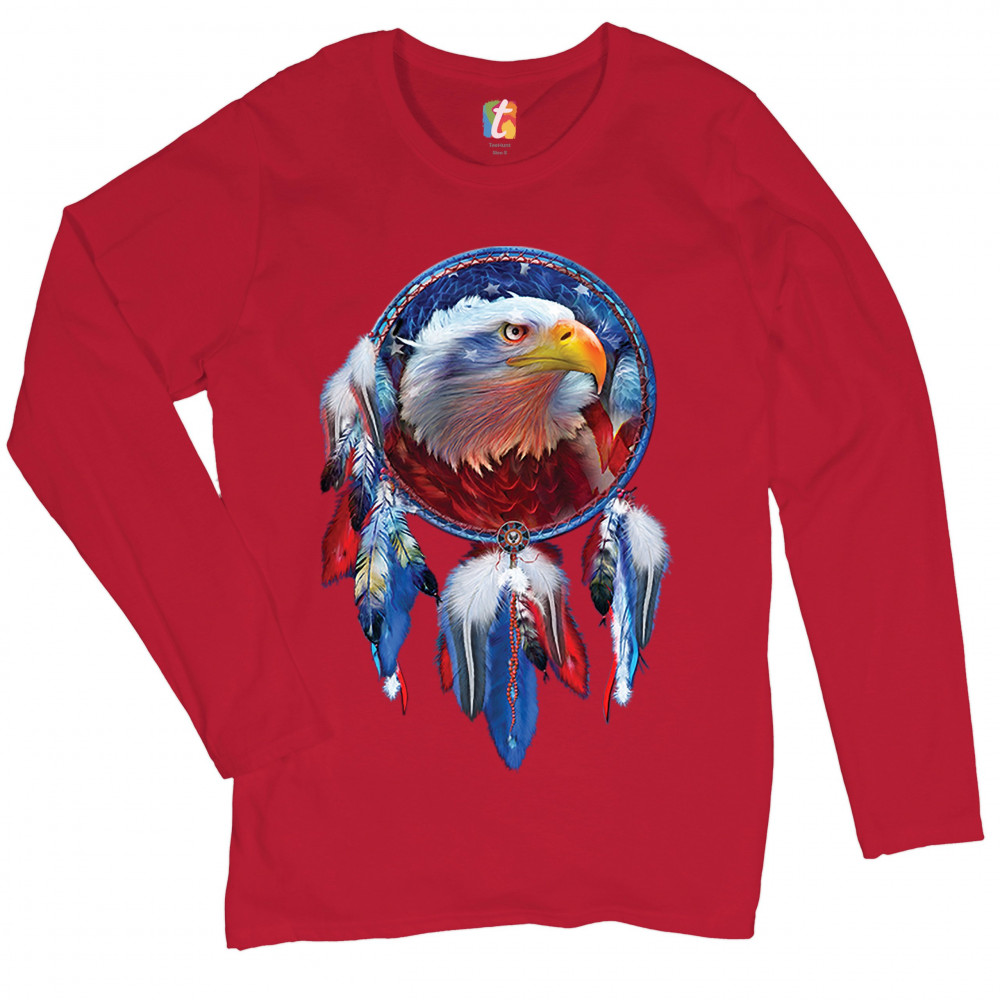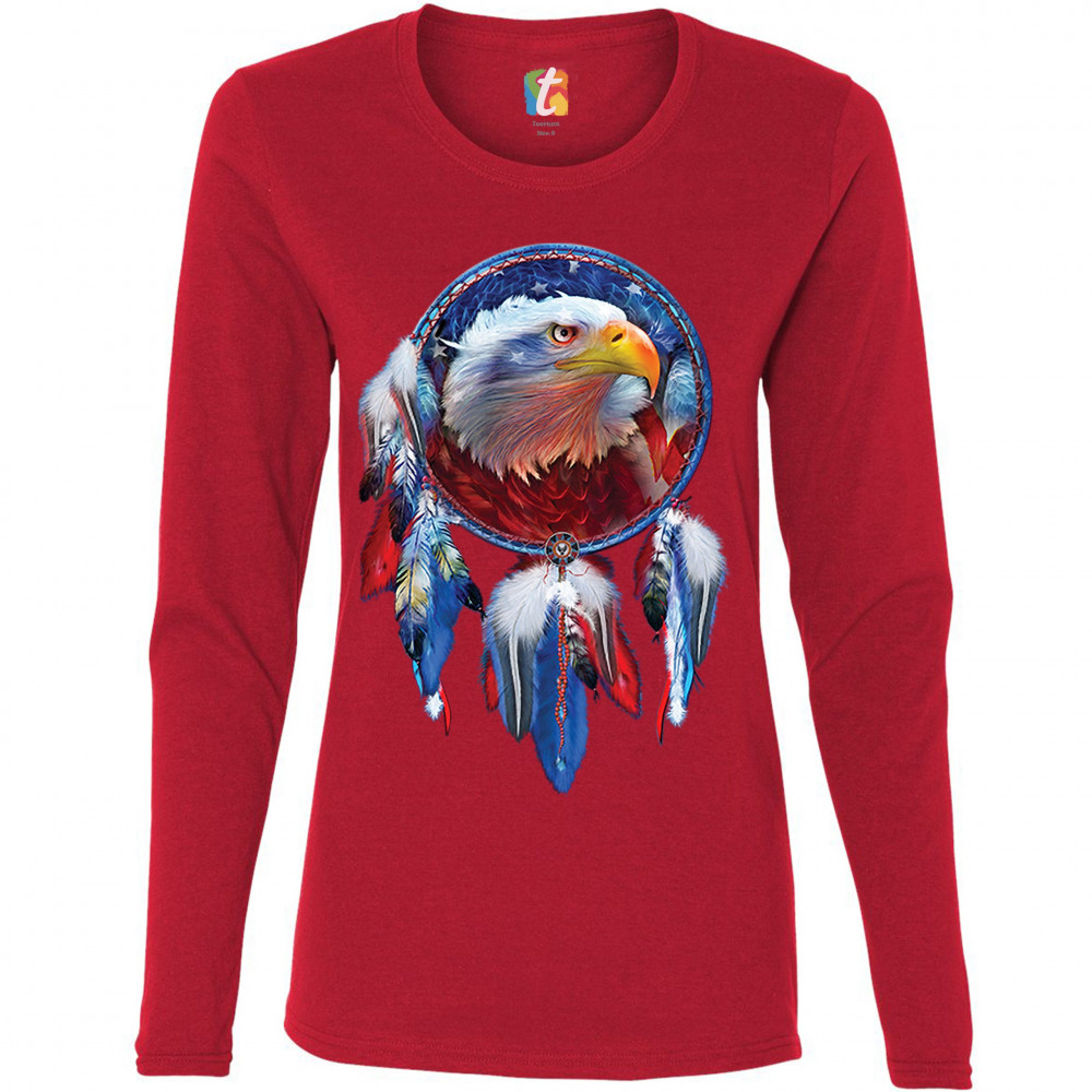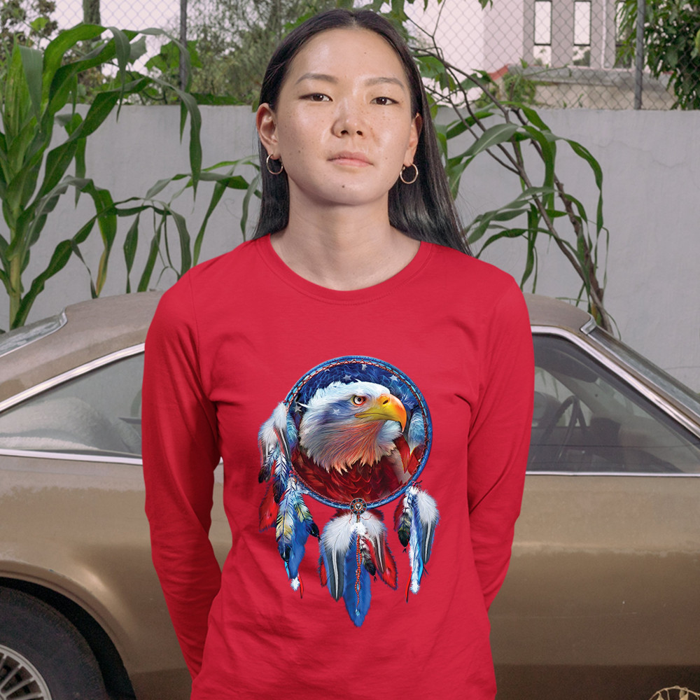 AMERICAN BALD EAGLE DREAMCATCHER women's long sleeve t-shirt native american red