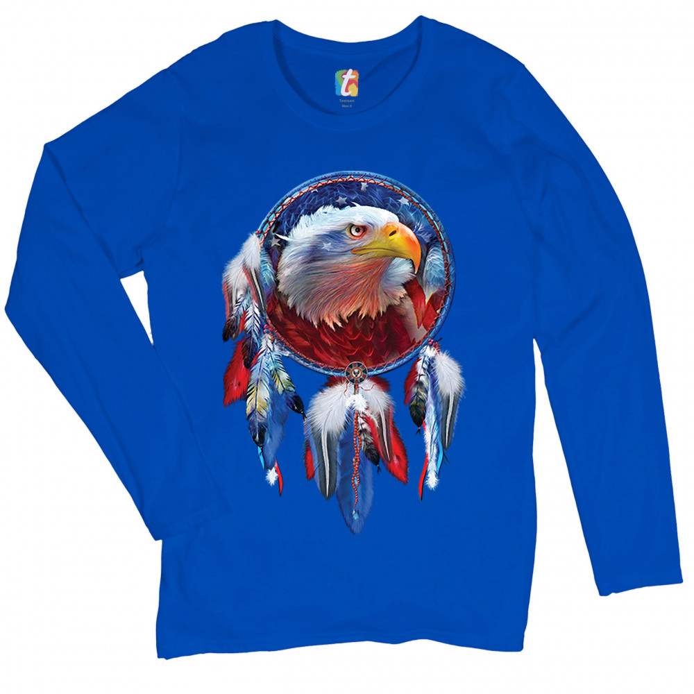 AMERICAN BALD EAGLE DREAMCATCHER women's long sleeve t-shirt native american royal blue