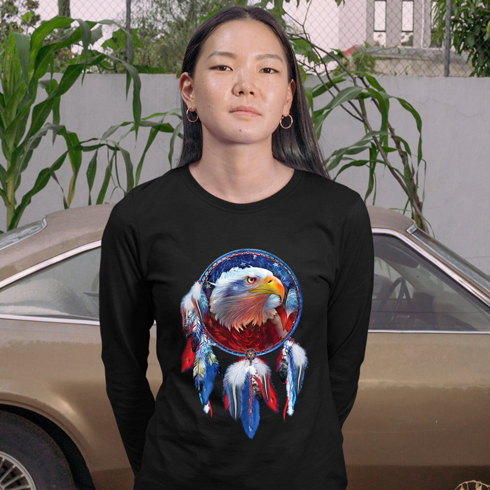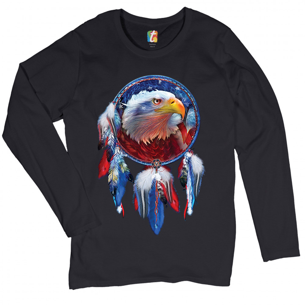 AMERICAN BALD EAGLE DREAMCATCHER women's long sleeve t-shirt native american black