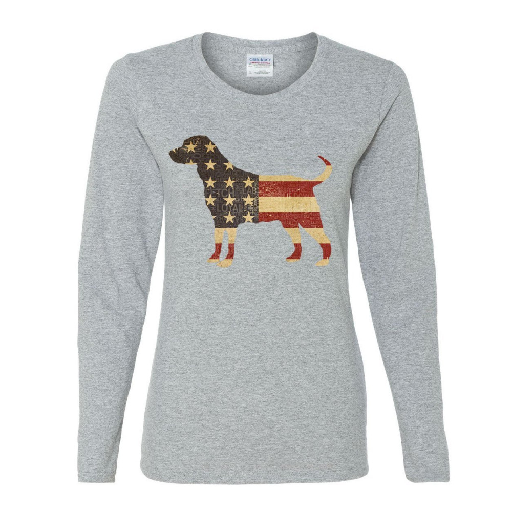AMERICAN DOG women's long sleeve tee stars and stripes retriever bulldog pitbull gray