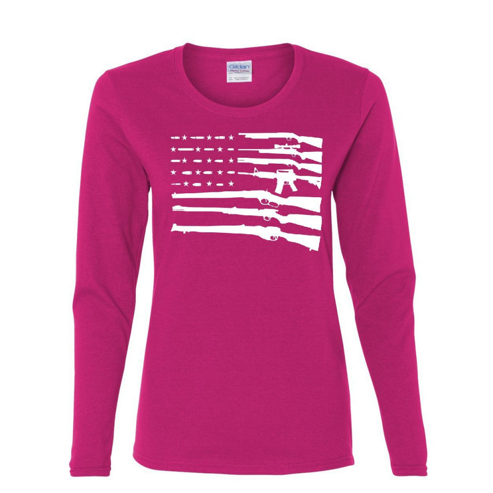 AMERICAN GUN FLAG american flag guns 2nd amendment women's long sleeve t-shirt tee pink