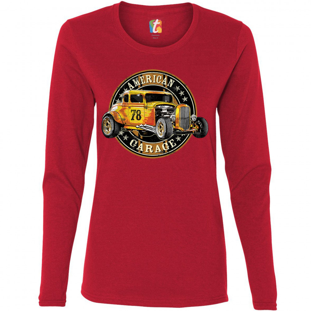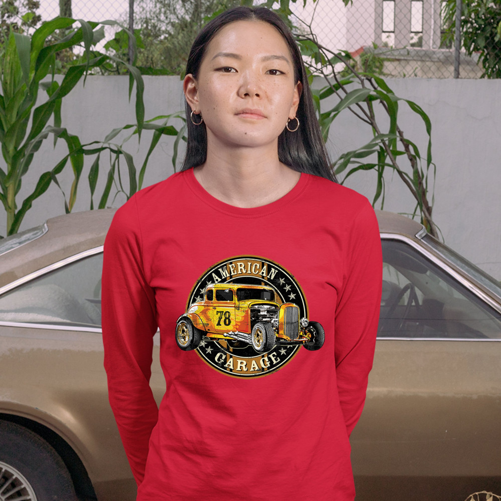 AMERICAN GARAGE women's long sleeve t-shirt retro hot rod vintage muscle car red
