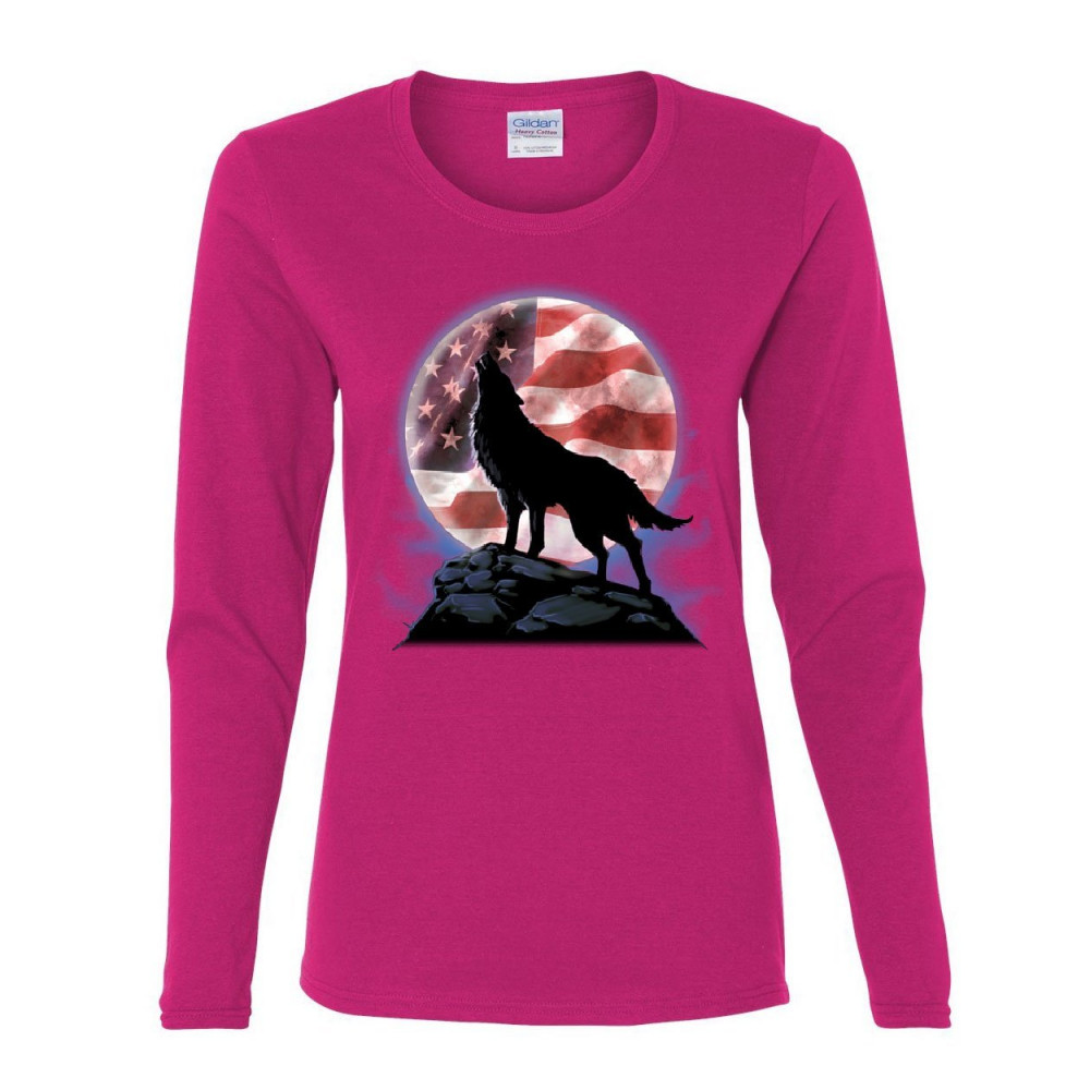 AMERICAN HOWLING WOLF women's long sleeve tee wildlife animal wolves wilderness pink
