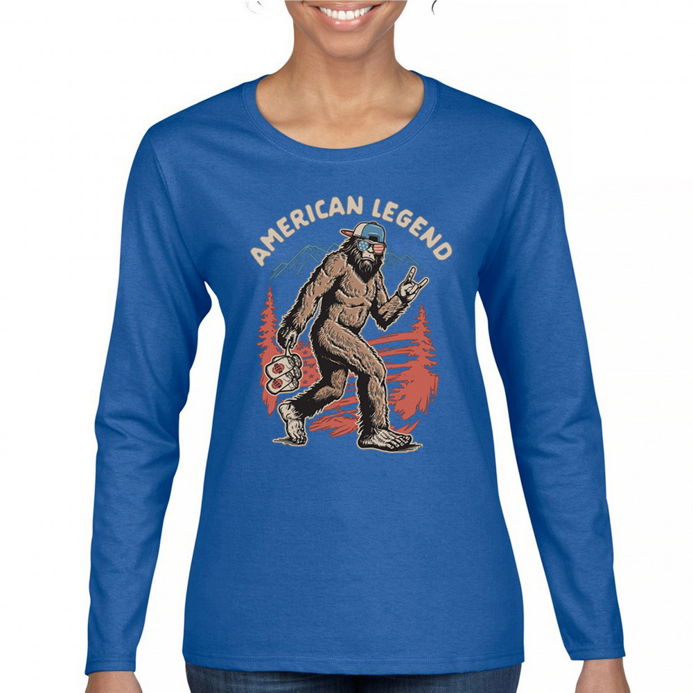 Funny Bigfoot design with patriotic flair—ideal for BBQs, beer lovers, campers, and cryptid fans who love to party in style!