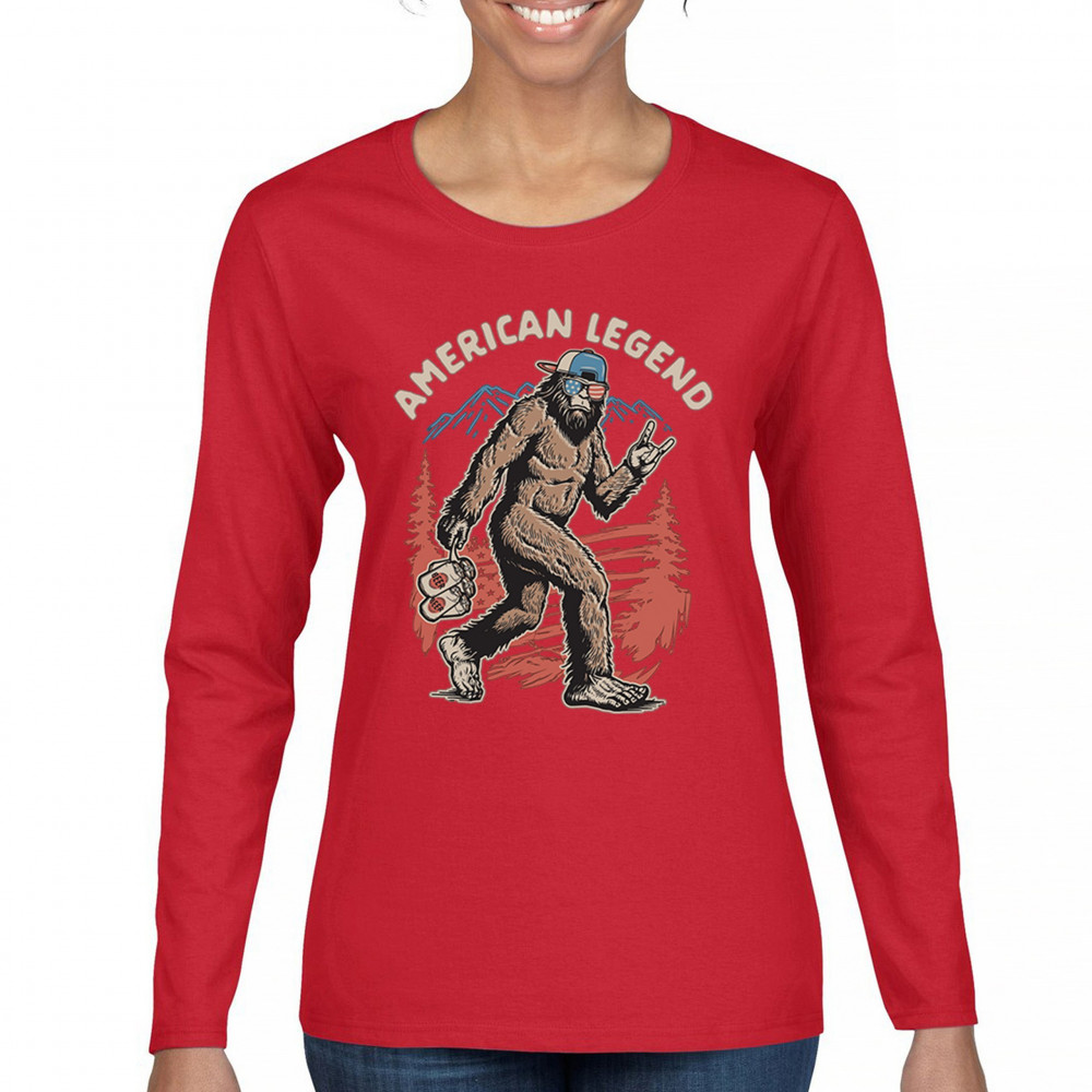 Funny Bigfoot design with patriotic flair—ideal for BBQs, beer lovers, campers, and cryptid fans who love to party in style!