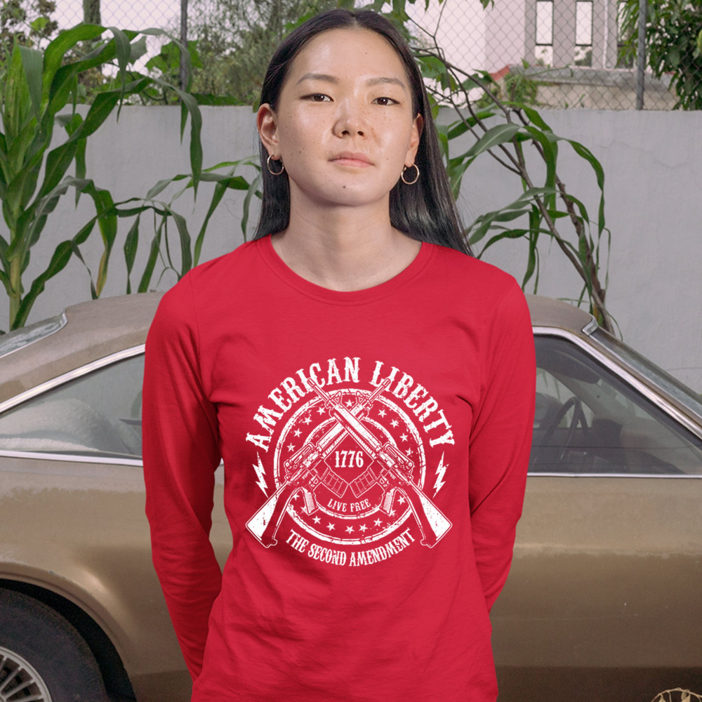 AMERICAN LIBERTY LIVE FREE women's long sleeve t-shirt the 2nd amendment 1776 red