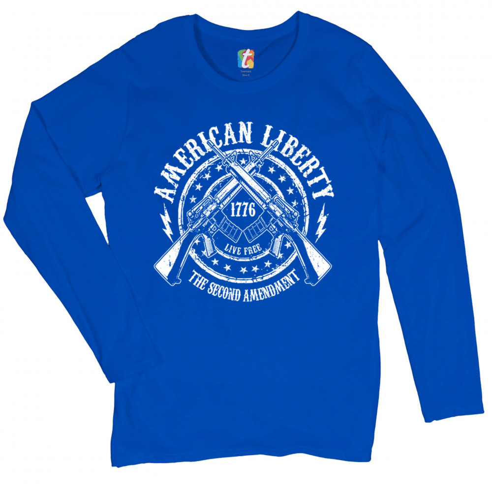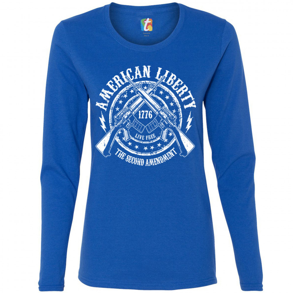 AMERICAN LIBERTY LIVE FREE women's long sleeve t-shirt the 2nd amendment 1776 royal blue