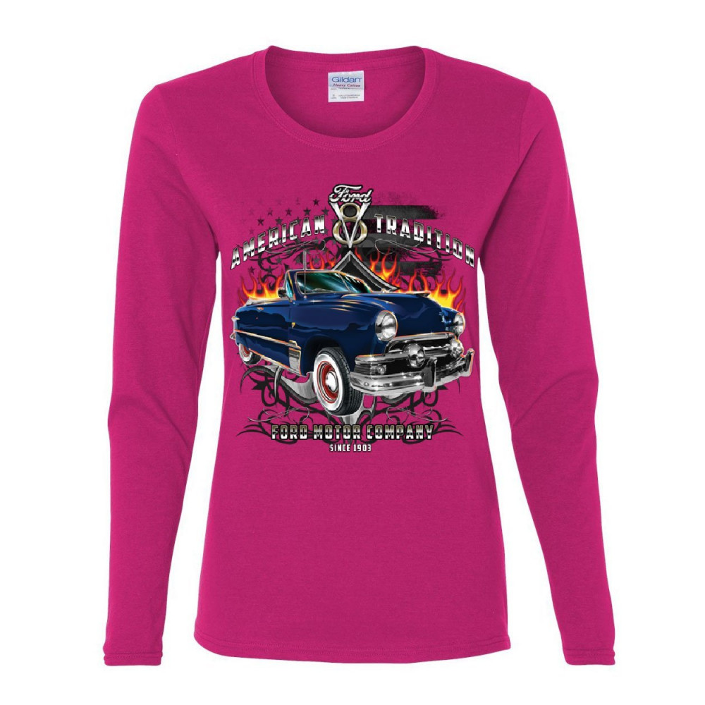 AMERICAN TRADITION ford motor company women's long sleeve tee classic since 1903 hot pink