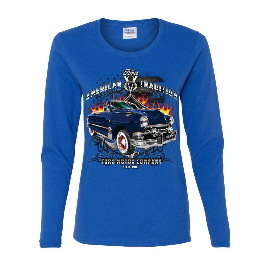 AMERICAN TRADITION ford motor company women's long sleeve tee classic since 1903 royal blue