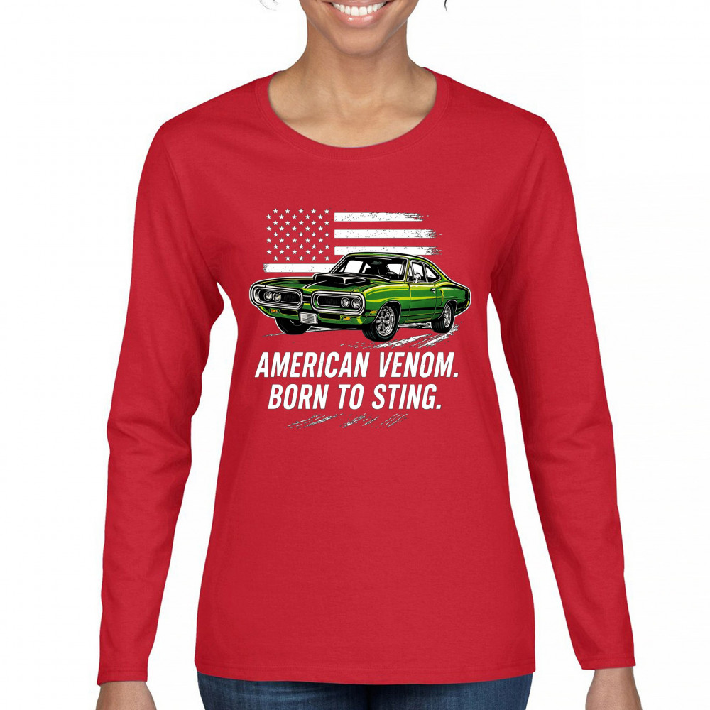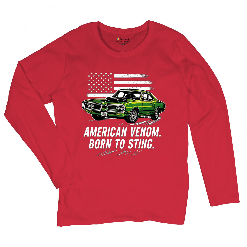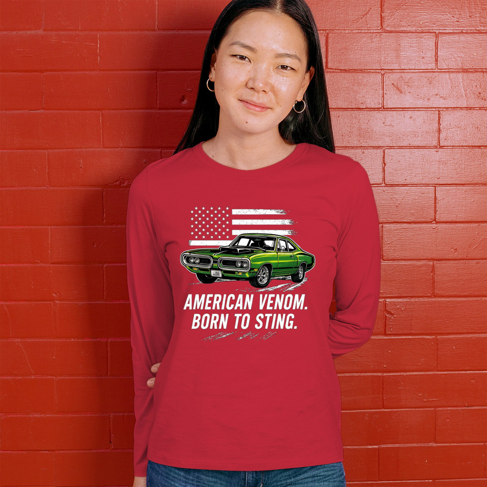 Inject venom into your street style with this bold green muscle car design. With “Born to Sting†power and a backdrop of American pride, this graphic is perfect for Scat fans, gearheads, and drivers who embrace speed, dominance, and the sound of true muscle. Rule car meets, rev battles, and highway runs with unmatched attitude.